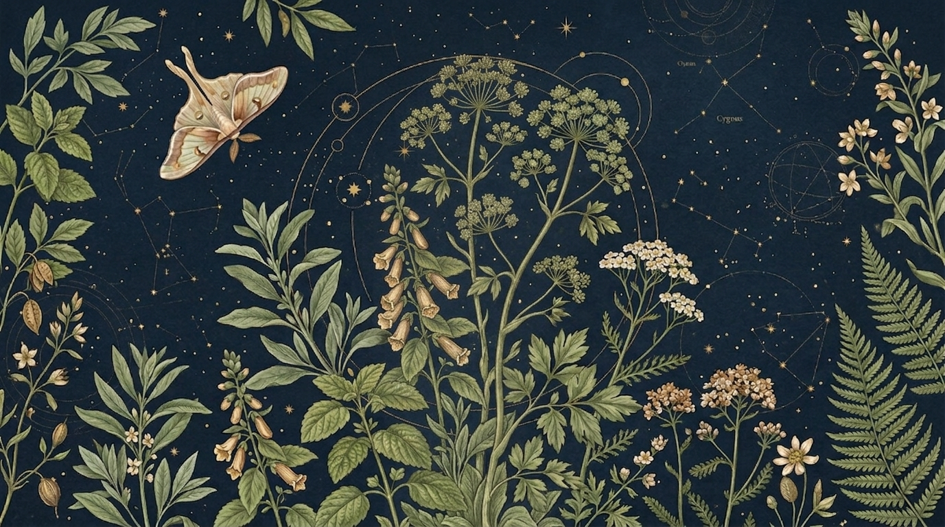 La herboastrología es un arte antiguo de correspondencias: leer el cielo para dialogar con las plantas. Nace del principio “como es arriba, es abajo” y se practica desde hace siglos en calendarios agrícolas, ciclos lunares y ritmos estacionales. Autores como Nicholas Culpeper (s. XVII) sistematizaron estas relaciones entre cuerpos celestes y especies vegetales, pero su raíz es más honda: la que nuestros ancestros usaron para sembrar, cosechar, ofrecer y sanar el espíritu de la casa y de la comunidad.